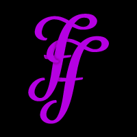 Here's the logo I made up. I'm very happy with how it turned out. My loose directive was to make it feminine and hint at naughtiness. I was really pleased when I saw the F of this particular script font, and realised just how well it would work when doubled up like this.
