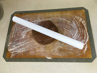 Roll half of the dough onto a silicone baking mat to approximately 1/8 inch.  Not greased.  May add a bit of flour.   Cut out your shapes. Remove the 'negative' dough leaving the shapes in place.  Bake for approximately 5-7 minutes depending on the thickness.  When the edges start to brown, they are done.
