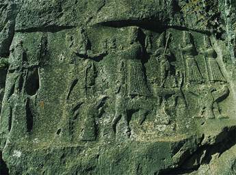 Yazili Kaya rock-cut frieze with God on Bull and Goddess on Lion