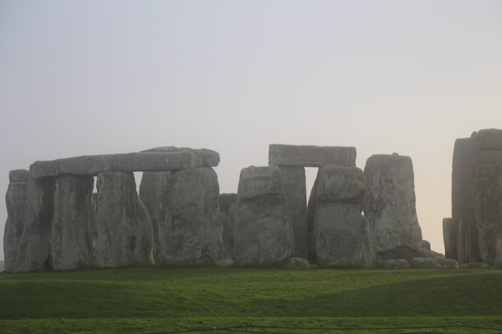 We got in the canvas covered landy and drove the two or so hours to the stones. It's a long drive and in true English fashion we got caught in some traffic from hell where we got to crawl around a mile in thirty minutes. As we we're crawling along the A303 you could see it from the side. Slowly growing from the fog. It's a low structure across the fields. We drove past and past and had to walk back, across the fields to get to it.