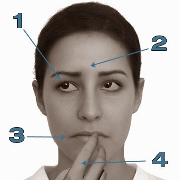 Στο πρώτο σημείο, το 0:46, βλέπουμε μία υποψήφια νοσηλεύτρια, στην οποία οι ερευνητές έδωσαν να δει ένα βίντεο με αποκρουστικές εικόνες, δίνοντας της όμως οδηγίες να πει ψέμματα ότι είδε κάτι ευχάριστο. Στο δεύτερο σημείο, το 3:09, ο νεαρός άνδρας έχει οδηγίες να πει ψέμματα σχετικά με το τι πιστεύει για τη θανατική ποινή. Και στο τελευταίο σημείο, το 3:33, βλέπουμε έναν πρώην πρόεδρο των ΗΠΑ να αρνείται κατηγορηματικά την ύπαρξει σχέσης με τη γραμματέα του. Και στα τρία σημεία μπορεί να παρατηρήσει κανείς το ελαφρύ ανασήκωμα στην περιοχή του μετώπου, που συμπαρασύρει και τα φρύδια, σημαντική ένδειξη ότι το άτομο δεν νιώθει άνετα μ’αυτά που λέει.