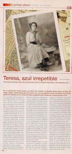 La historia que en DIAMANTE AZUL se cuenta, publicada en 2015, no sólo es el resultado de una investigación exhaustiva de mi propia historia familiar (y, por tanto, imposible de plagiar), sino una obsesión que como escritora me acompaña desde hace más de 15 años, como demuestra este artículo (escaneado al final), publicado en 2004 en la revista El duende, donde ya hablaba de los ojos azules de mi abuela y resumía el argumento que luego se ha convertido en mi última novela. De todos y cada uno de los detalles aludidos tengo pruebas documentales, que presentaré ante quien sea necesario y que demostrarán no sólo la veracidad de mis fuentes sino lo absurdo de la acusación. Por citar sólo un ejemplo: la cómoda que se me acusa de haber plagiado fue dejada en herencia por mi tatarabuelo en su testamento, que obra en mi poder. Es, por tanto, real, como no dudo que puedan serlo muchos de los elementos del libro que se me acusa de haber plagiado. Se trata de inevitables coincidencias, producto de elegir como materia novelable una misma época y una misma sociedad. Por descontado, tengo numerosos testigos de mi tarea de documentación, que discurrió por archivos, bibliotecas y hemerotecas —de los que dejé constancia en los agradecimientos finales de la novela— y que contó con la colaboración de varios profesionales, entre ellos un notario.