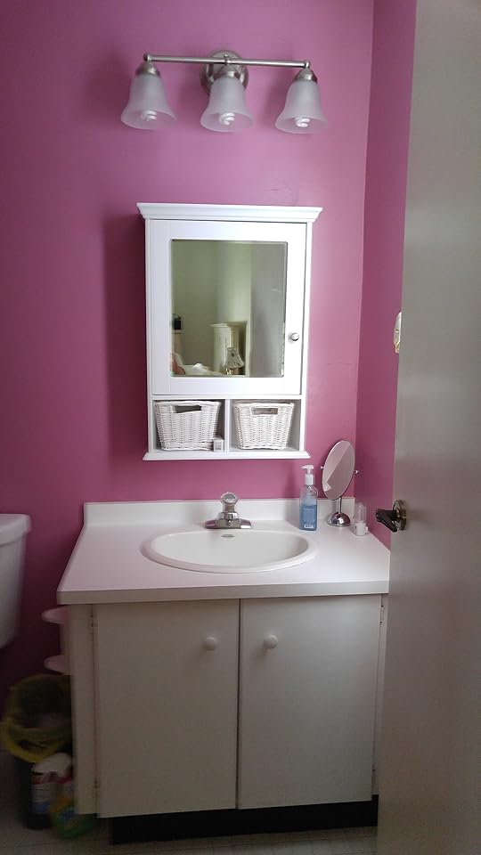 Demolishing the dated kitchen was one of the first items on our agenda. Of course we replaced the toilets immediately, and Joe painted my powder room and installed a new medicine chest and shelves for my knick-knacks. Bulk pick up day arrived and we got rid of the former owner’s ripped, filthy window coverings and the other junk he left behind.