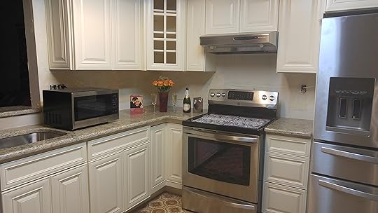 My son-in-law installed the new cabinets and the granite guys came to install the counters and the sink. The stainless steel appliances arrived, and Joe had begun the arduous task of getting rid of the glue that remained on the walls so he could paint.