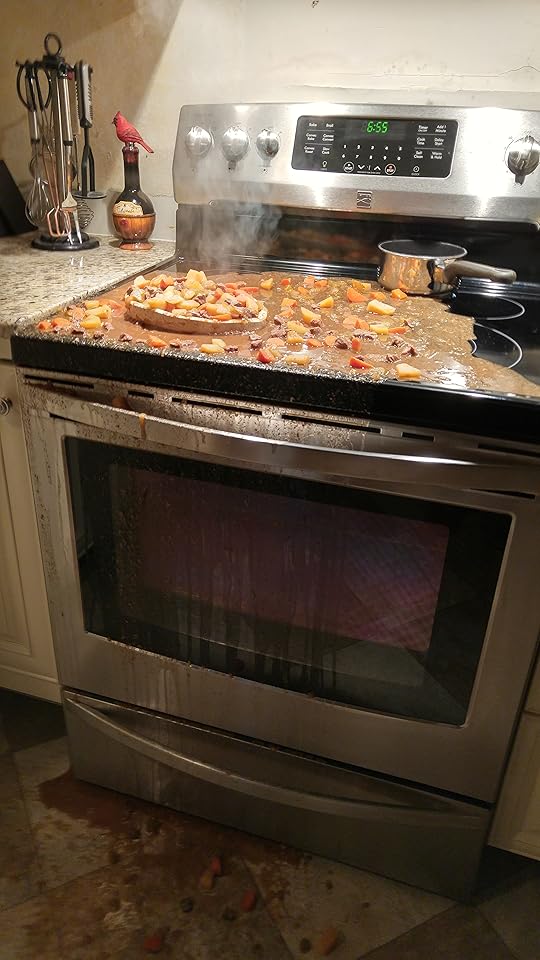 We were making stew in my mother’s twenty-five year old crock pot. The gravy wasn’t thickening nicely so I suggested Joe warm it up on the new stove.