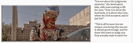 “It is not about the judgments anymore.” She interrupted him with tears starting to fill her eyes “Now, it is about the heartache, it is about who I am, where do I feel accepted, and to just be?!”