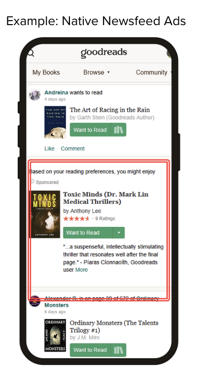 “Advertising on Goodreads with the Native format was effortless and highly effective. I reached exactly the readers I wanted, and the results exceeded my expectations.” – Anthony Lee, author of Toxic Minds