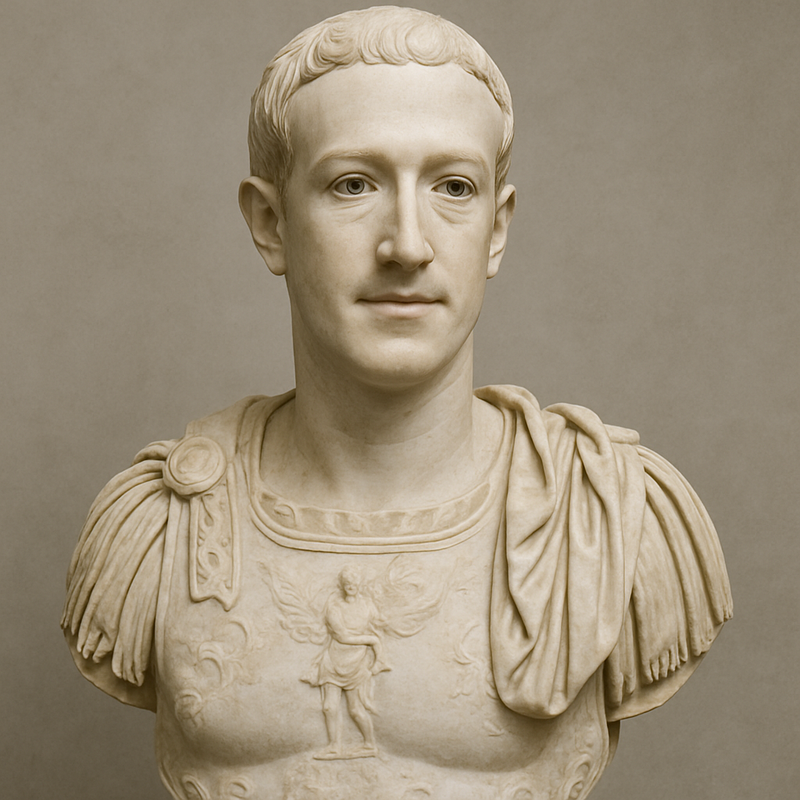 Endlich weiss ich Bescheid über Mark Zuckerbergs bemerkenswerte Frisur ;-) Er huldigt damit seinem großem Idol, dem römischen Kaiser Augustus, von dem er geradezu besessen sein soll. Seine zweite Tochter taufte er August und seine Frau pflegt spasshalber zu erzählen, dass sie zu dritt auf Hochzeitsreise in Rom waren: Mark, sie selbst und Kaiser Augustus.