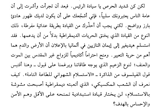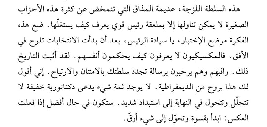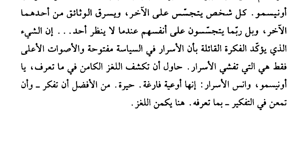 همه ی طلسم های سیاست را می دانی ، دموکراسی ، وطن پرستی ، حکومت قانون ، تفکیک قوا ، جامعه ی مدنی ، تحول اخلاقی . خطرناک ترین چیز باور به آن هاست . بدترین چیز آن است که آن ها را با قطعیت بر زبان بیاوری .