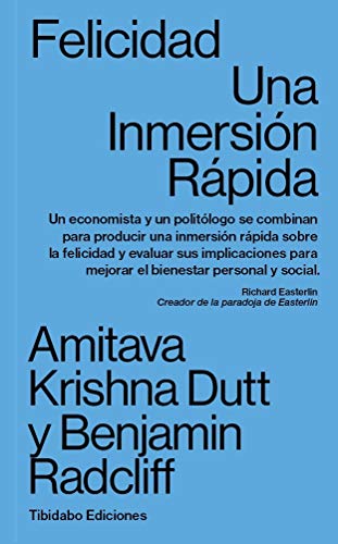 CRÍTICAS "Un economista y un politólogo se combinan para producir un breve estudio sobre la felicidad y evaluar sus implicaciones para mejorar el bienestar personal y social." — Richard Easterlin, creador de la paradoja de Easterlin Este conciso y estimulante libro hace exactamente lo que dice. Sumerge a los lectores en la nueva ciencia, economía y política de la felicidad, y se sentirán instruidos y renovados. — Darrin M. McMahon, profesor de Historia en Dartmouth College Este libro esencial va más allá de la 'charla feliz' que marca la marea de libros de autoayuda sobre la felicidad. En cambio, Radcliff y Dutt proporcionan un mapa accesible, atractivo y completamente multidisciplinario de los innumerables estudios académicos sobre el campo de la "ciencia de la felicidad". Hay muchas razones para esperar que el libro sea una referencia clave para los académicos y estudiantes que entran en esta floreciente área de investigación. — George DeMartino, profesor de Economía Internacional en la Universidad de Denver RESEÑA DEL LIBRO Este libro proporciona una breve inmersión al concepto de felicidad examinando los estudios académicos sobre el mismo. Entre las preguntas que explora ¿Qué significa la felicidad? ¿Es un concepto que es posible entender en términos generales o es mejor dejar que la gente lo defina a su manera mientras busca ser feliz? ¿Se puede medir la felicidad y sus diferentes significados y, de ser así, cómo? ¿De qué depende la felicidad? ¿La felicidad de una persona depende de su predisposición y de sus circunstancias individuales, o depende en parte de cómo está organizada la sociedad y de lo que hacen los poderes públicos? ¿El dinero compra la felicidad? ¿Qué tipo de factores políticos, económicos, sociales y ambientales hacen más felices a las personas y a las sociedades? ¿Qué puede hacer la gente, individual o colectivamente, para ser más feliz?