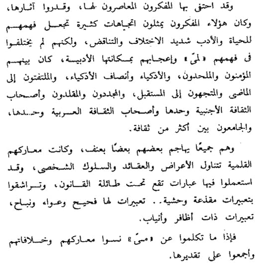 كنت مستنية أكتر عن خليل مطران، اللي الكاتب ماتكلمش عنه غير في مواقف مفردة أو سطور بسيطة. و كمان ماذكرش جبران غير مرة واحدة تقريبا، حسيت الكتاب محتاج يكمل :) .
