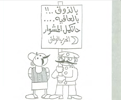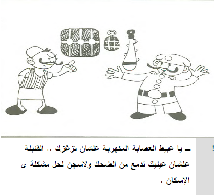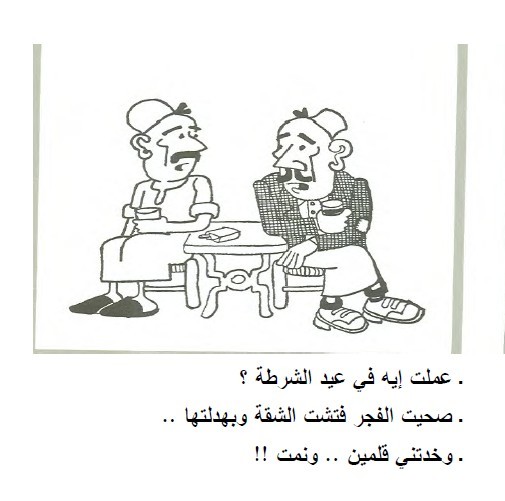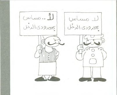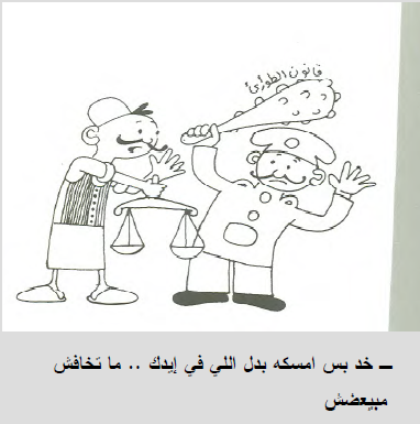 وقد اختار بهجت للتعبير عن هذه العلاقة الثابتة والمتغيرة، شخصية عسكري البوليس التقليدي، الذي يرتدي البدلة الميري، ويضع عدة شرائط على ذراعيه ويبرم شاربه كالصقر، ليكون ممثلا للحكومة في مقابل الفلاح المصري، بالزعبوط والصديري والقميص الدبلان نائبا عن الأهالي.