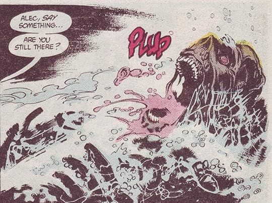 It continues into a creepy Vampire arc, where a clan of Vampires and their horrifying Vampire Queen -- a morbidly obese, bloated carrier of countless fishlike Vampire eggs -- live beneath the still waters of a manmade lake, a lake that sprang up over an old town because of a dam project. Again, ecological concerns are firmly in place, but the macabre kookiness is in the frightening progeny of the Vampires and the bizarre way Swamp Thing deals with their presence.