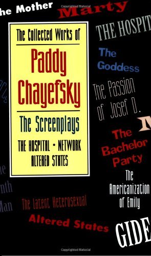 Paddy Chayefsky (1923-1981) was a brilliant writer and in this book we can find two wonderful screenplays: "The Hospital"(1971) and "Network" (1976). Both winners of the Academy Award. I recommend this book and the movies, especially "The Hospital", a powerful black comedy, hilarious, thought-provoking, one of the finest ever made. "You may die laughing" (The New York Daily News)