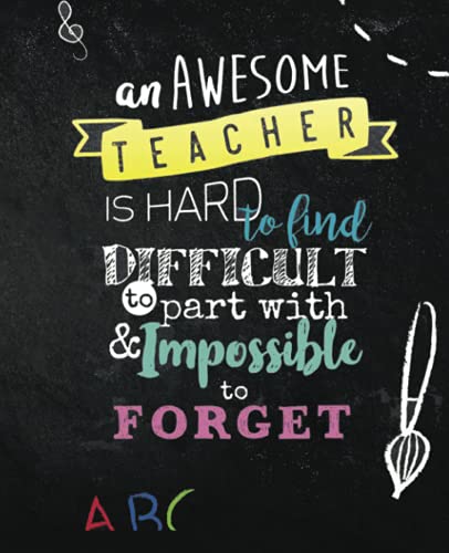 With the heartwarming quote on the full-color Matte SOFT cover Page, this notebook will help remind a teacher that their hard work is appreciated. With college-Ruled pages (7.5”x9.25”) this notebook with chalk style lettering is the perfect size to tuck into a purse, keep on a desk or as a cherished bedside companion. Give a teacher a gift they’ll remember!