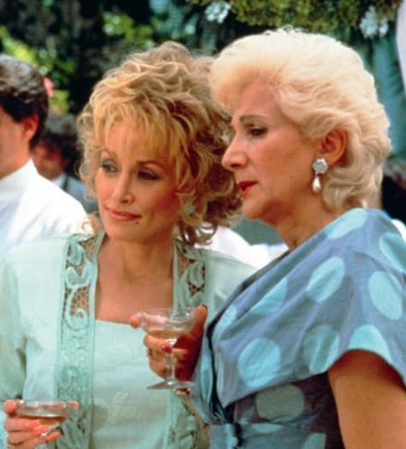 “With typical Dolly candor, she reportedly told the director, ‘Well, hell, I know I can’t act! But that’s your job. You’re the director. You’re supposed to help me with my acting. You hired me ’cause you thought I was gonna make you a lot of money. Now earn it.’” Dolly with Olympia Dukakis in ‘Steel Magnolias’ (1989).