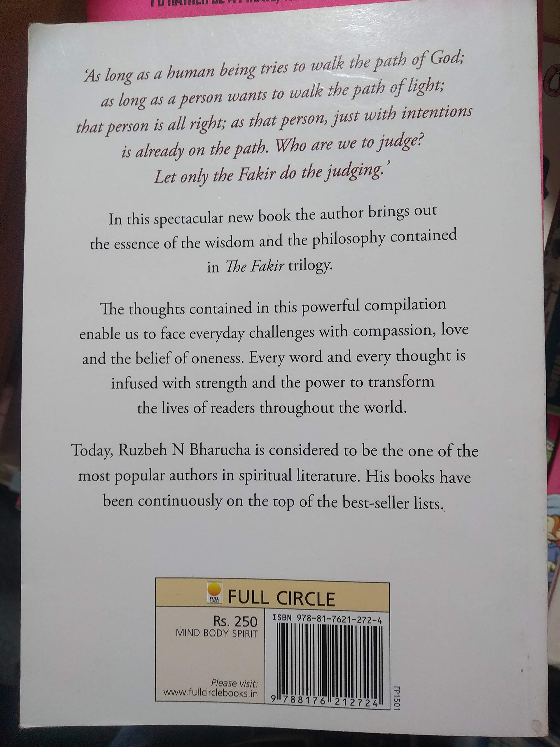 In this spectacular new book, the author brings out the essence of the wisdom and the philosophy contained in The Fakir trilogy. The thoughts contained in this powerful compilation enable us to face everyday challenges with compassion, love and the belief of oneness. Every word and every thought is infused with strength and the power to transform the lives of readers throughout the world. Today, Ruzbeh N Bharucha is considered to be one of the most popular authors in spiritual literature. His books have been continuously on the top of bestseller lists.