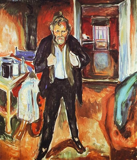 Throughout Edvard's life, Dostoevsky was the writer of greatest importance to him; indeed, his last action on his last day on earth was to lay aside the Dostoevsky novel he was reading before composing himself for death. But while father and son each found deep and personal meanings in the same texts, they read them through different prisms. Christian read them as faith-affirming Christian texts; Edvard as psychological dramas, as the novels of a modern writer who, as the narrative unfolded, succeeded in conveying in parallel the outer and the inner life. This was exactly what Edvard wanted to achieve with paint. ‘Just as Leonardo da Vinci studied human anatomy and dissected corpses, so I was trying to dissect souls.’... ‘No one in art,’ he told a friend, ‘has yet penetrated as far [as Dostoevsky] into the mystical realms of the soul, towards the metaphysical, the subconscious, viewing the external reality of the world as merely a sign, a symbol of the spiritual and metaphysical.’ (p. 74).