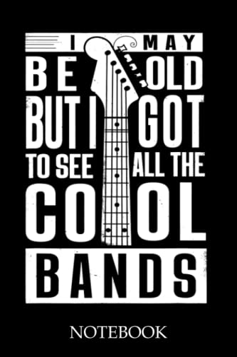 Cool Gift Idea for Men, Women - I May Be Old But I Got To See All The Cool Bands Guitar Player Vintage Notebook. Funny Holliday present for guitar lovers, rockstar musician, son, wife, daddy, best friend, mother on Birthday Party. Unique Guitarist Gifts Father's Day 60's 70's 80's Style Classic Rock Concert Notebook.