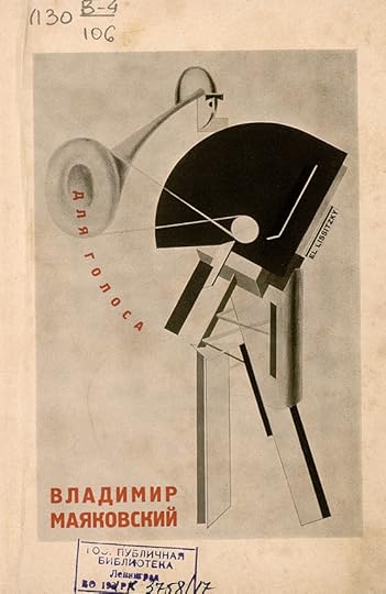 Prachtige uitgave, perfect huwelijk tussen vorm en inhoud... een kunstwerk op zichzelf. 'Voor de stem' (1923) was een bundel om uit voor te dragen; het waren gedichten om te gebruiken. Om het de declamator (Majakovski zelf en anderen) gemakkelijker te maken een gedicht snel te vinden, maakte Lissitzky er een duimenregister in, waarbij de 13 gedichten bovendien elk een beeldmerk kregen, nieuw in de poëzie. Een zeldzaam hebbeding!