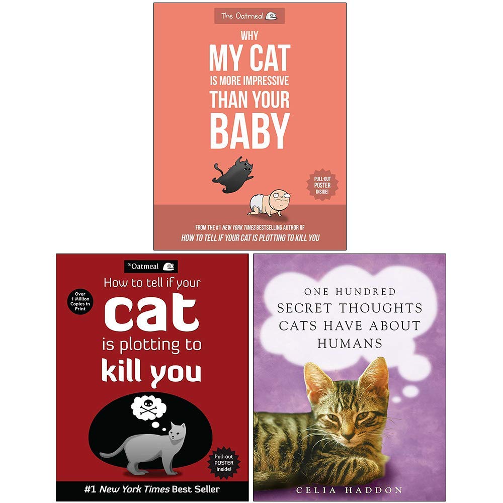 Please Note That The Following Individual Books As Per Original ISBN and Cover Image In this Listing shall be Dispatched Why My Cat Is More Impressive Than Your Baby, How to Tell If Your Cat Is Plotting to Kill You, One Hundred Secret Thoughts Cats Have About Humans 3 Books Collection Why My Cat Is More Impressive Than Your Why My Cat Is More Impressive Than Your Baby is chockfull of comics about cats, babies, dogs, lasers, selfies, and pigeons! This book contains a vast wealth of never-before-seen comics, including informative guides, such to comfortably sleep next to your cat, 10 ways to befriend a misanthropic cat, How to hold a baby when you are not used to holding babies, A dog's guide to walking a human being, How to cuddle like you mean it. How to Tell If Your Cat Is Plotting to Kill Brilliantly whimsical yet oddly informative, TheOatmeal.com is an entertainment site full of comics, quizzes, and stories. Matthew Inman, creator of TheOatmeal.com, is a king of all trades when it comes to the Web. He writes, draws, and codes everything on the site, and his viral marketing skills make the site a huge success. How to Tell If Your Cat Is Plotting to Kill Youis a very funny, creative selection of comics, facts, and instructional guides, which all stem from the creative wonderland at TheOatmeal.com. One Hundred Secret Thoughts Cats Have About Adopt a rescue human. They think they are adopting you. Humans that need homes go to special places where cats are kept. These are rescue humans.Humans can't caterwaul - except in the bath or sometimes when they play the piano.They cannot purr. Cat psychologists suggest that this gap in the human vocal repertoire is due to their lack of inner confidence and serenity.