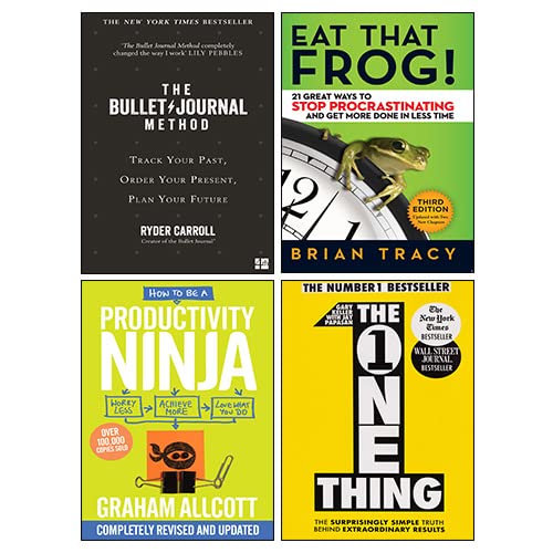 Please Note That The Following Individual Books As Per Original ISBN and Cover Image In this Listing shall be Dispatched The Bullet Journal Method, One Thing, How to be a Productivity Ninja, Eat That Frog! 4 Books Collection The Bullet Journal Transform your life using the Bullet Journal Method, the revolutionary organisational system and worldwide phenomenon. The Bullet Journal Method will undoubtedly transform your life, in more ways than you can imagine’ Hal Elrod, author of The Miracle Morning In his long-awaited first book, Ryder Carroll, the creator of the enormously popular Bullet Journal organisational system.
