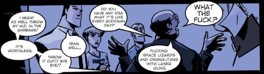 Ze začátku jsem byl trochu rozčarován celkově z atmosféry a pacingu který jsem v komiksu už dlouho nezažil, celé to totiž bylo takové hodně bizarně zemité (to asi nedává smysl) Dialogy jsou sice často docela absurdní ale zároveň lidské a máte při nich pocit že takhle prostě na policejní stanici spolu kolegové mluví apod.