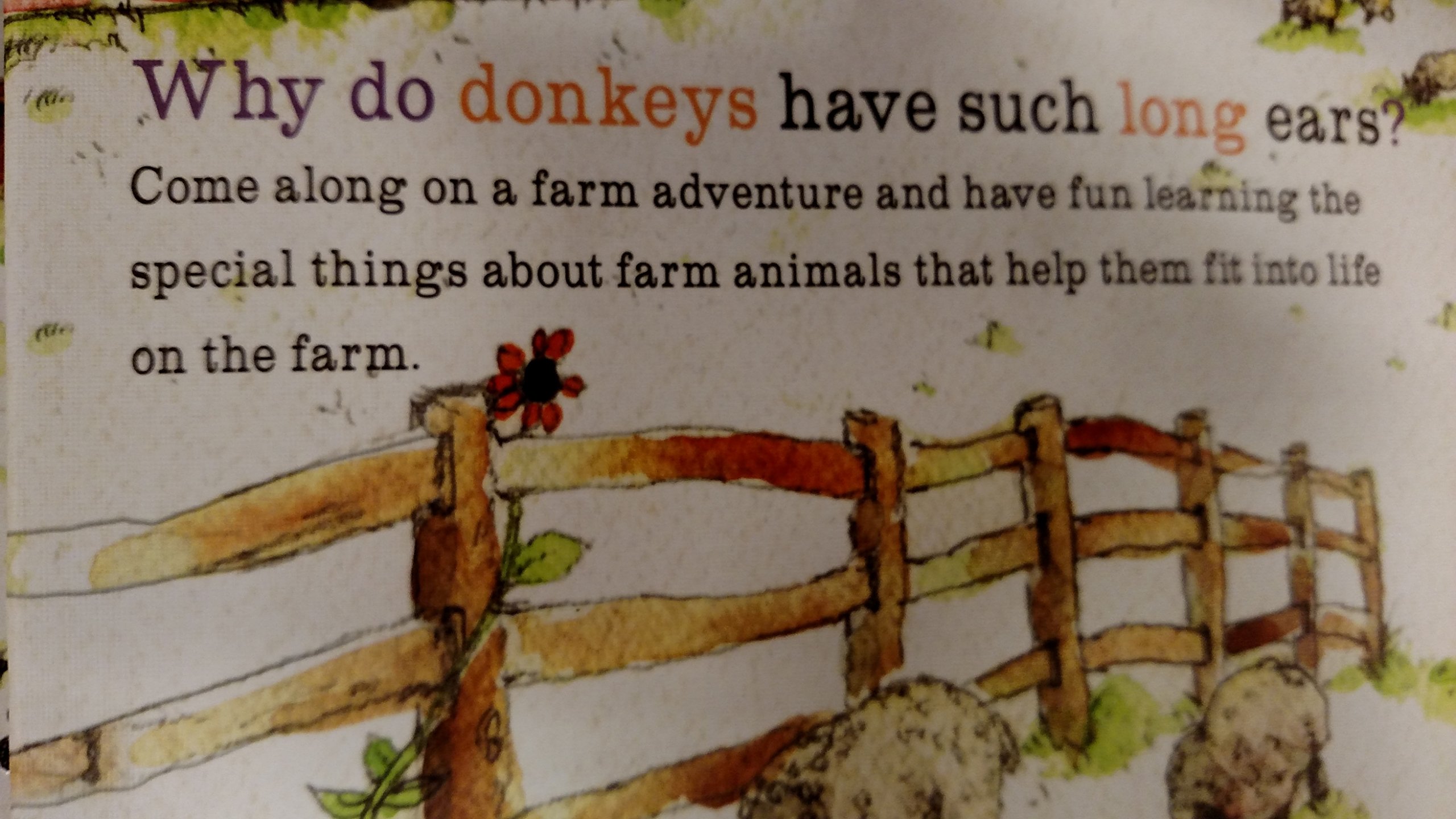 Come along on a farm adventure & have fun learning the special things about farm animals that help them fit into life on the farm. Also in same series Why Do Leopards Climb Trees?, Why Do Camels Have Such Long Eyelashes?, & Why Do Sea Turtles Look Like They Are Crying?