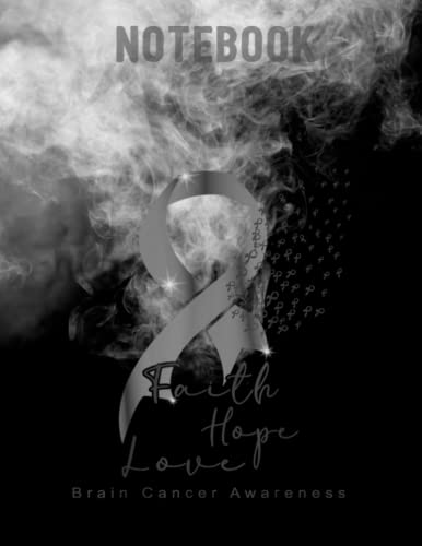 Notebook: Faith Hope Love / Grey Ribbon / Brain Cancer Awareness / CollegeRuled Line / Large 8.5''x11''