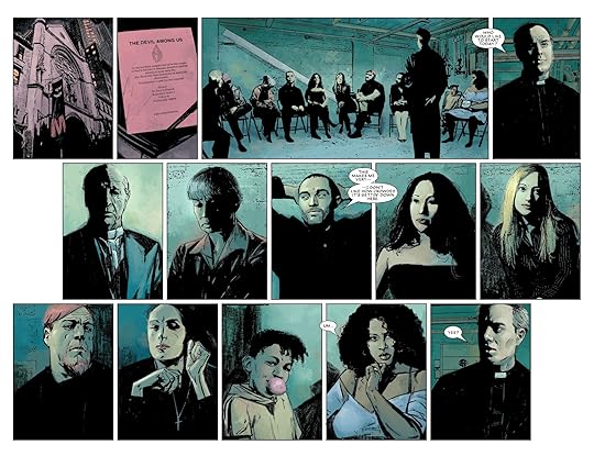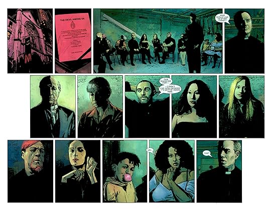 Then there's the spooky bit about a real devil. *shudder* Again, I wasn't expecting it to get to me. It starts with this group meeting in a church basement to discuss how Daredevil has made a difference in their lives. Good or bad. Like some kind of Hell's Kitchen self-help group, or something. Not all of their stories interconnected, but they were all really good, and they all helped show a bigger picture of what Matt had done for the community.