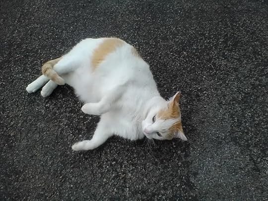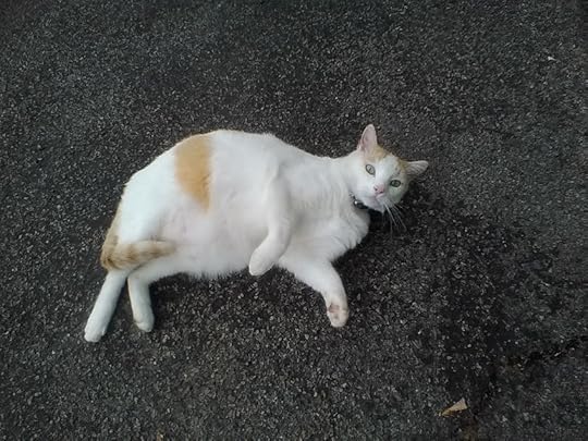 It's hard to rate a book like this. It's a heartfelt ode; a slight book but certainly a lovely gesture. Ralph Steadman has turned his talents often to books about endangered animals, and his concern is palpable and his heart seems true. I enjoyed his reflections and impressions about his brief moments with Jones. And the following pictures are not of Jones, but of a cat I knew for awhile when I was living in Nashville in 2014-2105, whose name I never learned. The cat lived in the house next door, and mainly wandered outside all day long, ignored pretty much by its owners. I simply referred to him/her as "my cat buddy." Although cat buddy seemed well enough fed and groomed, I felt she was starved for some attention. So even though I was a stranger, she took to me right off, coming right to me for pettings. When I had to move from the house in December 2015 I was hoping to say one last goodbye to Cat Buddy, but as I was packing my car the cat never appeared. I felt much the same kind of sadness that Steadman did after leaving Jones in the book.