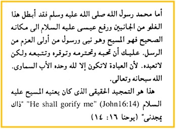 قدم ديدات دليلا من القران والتحيل يدعم حقيقه ان سيد البشر محمد صلي الله عليه هو الريث الشرعي للسيد المسيح ورسالته للبشريه الانجيل والتوراه بشروا بقدوم سيدنا محمد ولكن علماء اللاهوت تلاعبوا بالالفاظ والترجمات ليحيوا عن الطريق ديدات ايضا استخدم اضافه للادلة الواضحه اسلوب المنطق وربط بعض الممارسات الخاطئة بالحياد عن الطريق وانها الدليل علي خلافه سيد البشر محمد