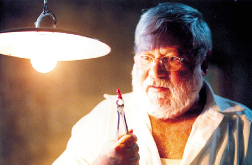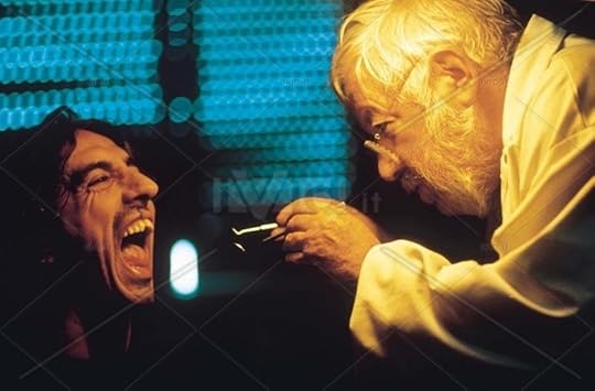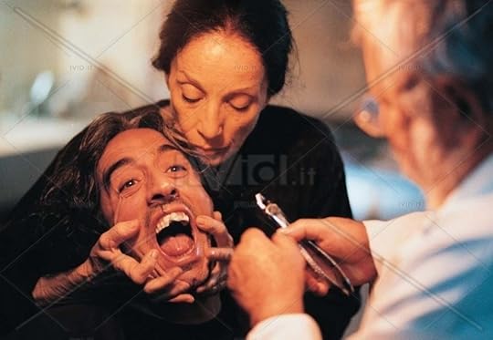 Sergio Rubini è il protagonista, di spalle il dentista-mostro interpretato da Paolo Villaggio, e la sua assistente Angela Goodwin nel film del 2000.