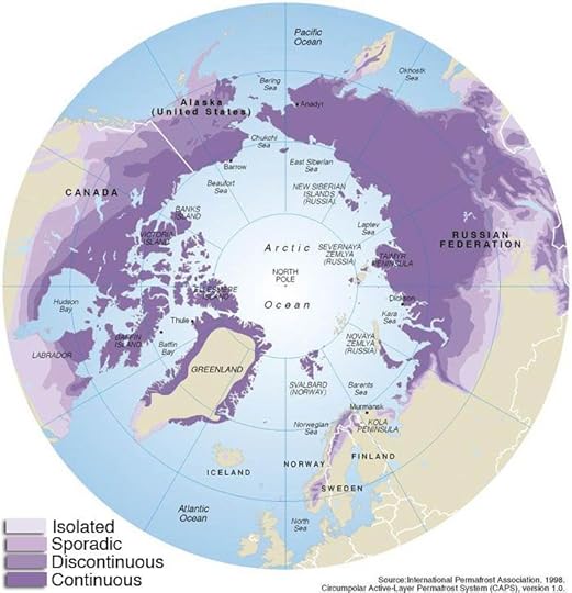 In summer, the ground thawed to a depth of just a few feet, and below that was impervious to water and hard as iron. In a sense, each spring it rained upward since evaporation was the only way water could escape. As melting snow saturated the topsoil, over time it had become covered with a dense luxuriant growth of grey Arctic moss...until the whole tundra had become one vast spongy bog."