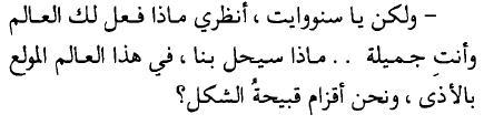 “لأن الحكايات التى تبدأ جميلة هكذا، ترتلها جميع كتب الأطفال ، لا يمكن أن تنتهي على هذا النحو أبداً"