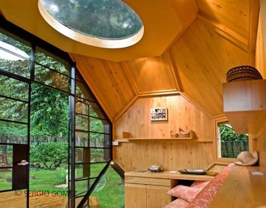 I must admit that I thought about Ted Kaczynski's little shack in the woods at first, but this book is a collection of delightful small houses in nature, ones that a contemporary Henry David Thoreau might enjoy using for his comtemplation and writing! The ones with lots of bookshelves were among my favorites, of course. :-)