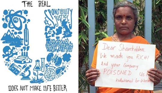 The long arms of power & money of the company corrupted & subverted whatever / whoever came in the path. We cannot help but feel the injustice and helplessness of the ex-employees, when they are fighting the 16 year long legal battle against a global corporation. Hence, whenever we encounter someone who stands by the ex-employees in the book like Mody, Greenpeace India, counsel Vaigai and others, we take a deep breath of relief. Ironically, it was not fairness in the courtroom that settled the dispute in 2016, but a nudge from Polman, the then CEO of HUL, after the Kodai mercury issue came into limelight, when he was nominated for the Champions of Earth Award by the UN.