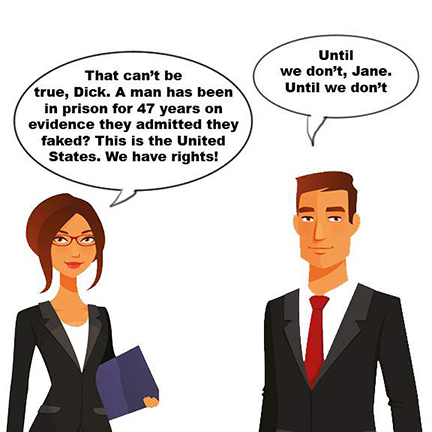 Nor fair parole hearings. When a Parole Examiner found out there was no evidence, he recommended immediate release. The BOP departed from its’ own guidelines and brought in a second Parole Examiner who said, “Keep him.”