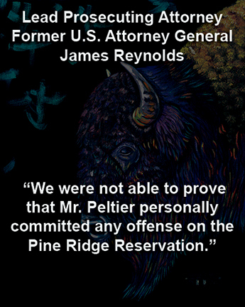 FACT: LEONARD PELTER'S PROSECUTING ATTORNEY, FORMER STATE ATTORNEY JAMES REYNOLDS, ISSUED A PUBLIC APOLOGY IN 2021, IN A LETTER TO PRESDIENT BIDEN, HE SAID, "WE COULD NOT PROVE THAT LEONARD PELTIER COMMITTED ANY OFFENSE ON PINE RIDGE RESERVATION."