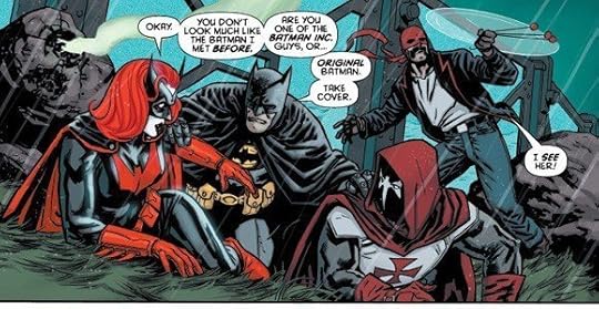 The only thing I will complain about were the two issues I had the most problem with (or the Scorpion Tango storyline in general, honestly). But it could just be a matter of taste. Personally, those were the only issues that almost made me want to stop reading. The best bunch it could offer are issues 5-8, the later ones where most of the meat and bones of the story are present. However, I will say that the bonus story, a two-parter called Leviathan Strikes is the most polarizing issue of the collection. There are genuinely amazing moments in it--but there are also some terribly confusing panels as well. Still, the climactic events led to that shocking revelation at the end which made almost everything worth the trouble. That cliffhanger was a wise decision. It gives the first arc a meaningful standstill where you realize that all that you have read is just a warm-up--and the real story is just about to begin by New 52. If I remember correctly, I'm right about this.