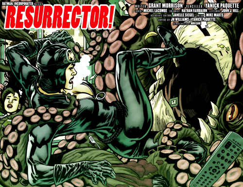 The first story arc is a great example of Morrison introducing a lesser-known version of Batman, and he does it by bringing back the mysterious and over the top Lord Death Man. Batman is seeking new agents to help him with global war on crime and he's recruiting actively. His extend family of sidekicks and the Gordons are already in the fold, and now Batman is looking to franchise the Cape and the Cowl worldwide.