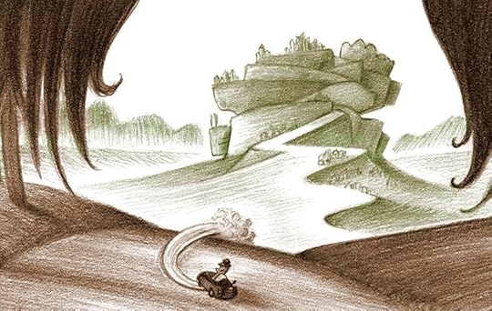 Percy Gloom is a one of those graphic novels that at first glance looks like it'd be something exciting and fresh, but stellar artwork- no matter how hypnotic- is no replacement for a scant and bizarrely developed plot that touches on various philosophies like existentialism, nihilism, and various phenomena that we all face- but doesn't really coalesce into any powerful message or conclusion. We're supposed to feel sad for Percy- and that's basically it. We see him try to make sense of the oddly fantasy-esque world that he is thrust into- that we can barely make sense of ourselves. He's something of an autist, a hypochondriac, and a momma's boy- saturated with timidity and a, disappointingly, unendearing simplicity and single-mindedness- under which there is supposed to be buried a heart of gold. While such a character construction might work in another story- how this character is formed, grown, and interacts with his outside world I find myself unable to care because his world is very strange, very different, and thus unnervingly un-relatable.