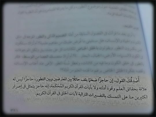 هذا الكتاب الرائع فتح أمامي آفاقاً جديدة سواء من الناحية الدينية أو العلمية وتتلخص فكرة الكتاب الرئيسية في ضرورة التخلي عن التفسيرات التراثية للقرآن الكريم وتبني تفسيرات جديدة تتوافق مع العلم فالقدماء عالجوا النصوص حسب فكرهم وثقافتهم ولقد تغيرت ثقافتنا وازداد علمنا ولهذا وجب علينا تغيير أفكارنا المتعلقة بتفسير القرآن وتحديداً آيات الخلق لتتوافق مع مفهوم التطور الموجه ومعناه ان الله -عزوجل- قد استخدم قوانين الطبيعة في خلق المادة الحية ثم استخدم آلية التطور في تنويع الكائنات الحية حتي ظهر الإنسان