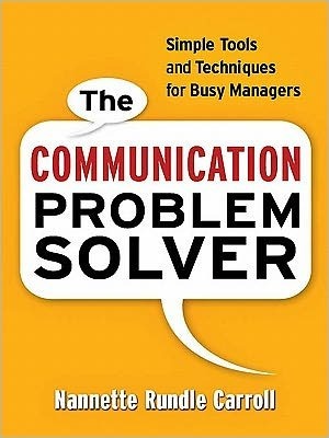 Nannette Carroll's new book, The Communication Problem Solver, is a first-class look at ways to energize your relationships, prevent and solve communication problems, and lead collaborative conversations. I recommend it whether you're communicating with a boss, an employee, a spouse, a child, or a teenager. Identifying observable behaviors and brainstorming for solutions are techniques that will work anywhere.