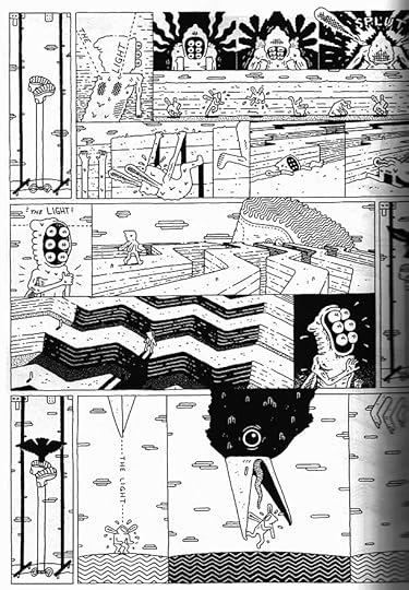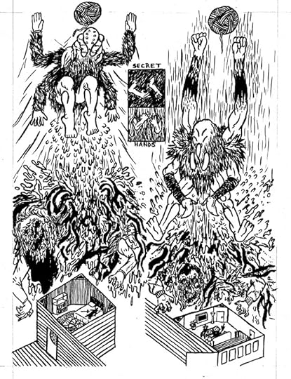 Providence has somehow developed this comic style all its own, all goopy scribbles and phantasmagoric scuzz, spawn of Fort Thunder and RISD artpunk. Not that this is Providence-only, but it's operating out of there, and the style totally comes through. Wrestling arachnids, geometric hair-scapes, lifetimes spent with a single facial expression, lots more stuff that gracefully navigates between abstraction and good (though often totally insane) narratives. Here're some sample pages I grabbed off of their site: