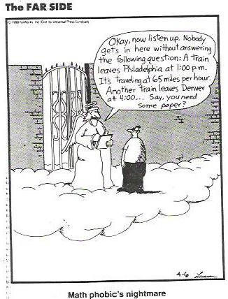 New word, Dyscalculia or math disability, difficulty in learning or comprehending mathematics and affects 3 to 6% of the population. Be careful you might encounter someone in heaven who will give you something that you might not expect.