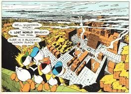 “Lost in the Andes” concerns Donald’s quest to find the source of rare square eggs. Donald and his nephews Huey, Dewey, and Louie eventually find a hidden Peruvian culture that speaks English with a heavy Southern accent as a result of a previous visitor’s influence, one Professor Rhutt Betlah. Donald and the boys figure out in a few minutes what the natives haven’t in centuries, that the square eggs come from square chickens that look like rocks.
