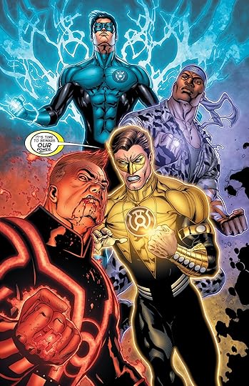 Perhaps by this time in Johns run on the book, I am as sick of reading it as Johns was of writing it. In some ways, Johns finishing this run is a boon for both Bedard (Green Lantern Corps) and Tomasi (Green Lantern: Emerald Warriors) as they seem to carry the action well throughout this crossover. However, the major parts still seem to end up in the pages of Johns Green Lantern. This makes some small bit of sense given that the last issue of the collection reveals the fate of Hal Jordan in relation to all of this (and in fact Green Lantern vol. 4 was cancelled with that issue) but still, I've always felt that Johns' collaborators were always beholden to his vision, and given that he was the Chief Creative Officer at DC Comics when this collection was originally published, it's likely that Bedard and Tomasi didn't have much of a choice, since he was effectively their boss. But apart from a thinly veiled reason to get your favorite Green Lanterns to wield different colored rings (there is a plot device that takes the green rings out of commission) and some frankly cool stuff concerning Sinestro, who I feel has been the true star of Johns' run, the whole collection feels like Johns is ready to be done with Hal Jordan and the Green Lantern Corps.