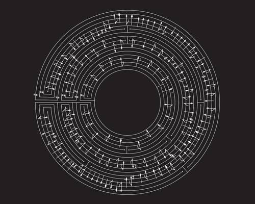 The elegant cover illustration is a commissioned arrangement of three songs from Tchaikovsky’s Swan Lake, adapted into a musical maze which is based on a 14th Century scribe’s version of the French ballade En la maison Dedalus. Each of the three arrangements corresponds to one of the ‘acts’ or chapters within the book.