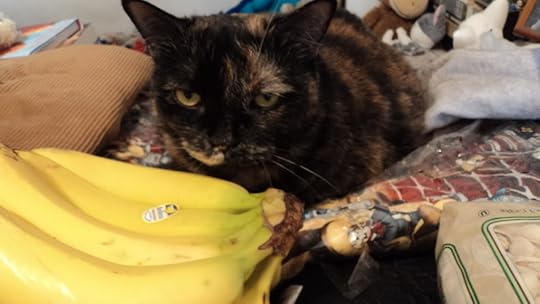 oh my god - a cat using a bunch of bananas as a pillow!! win a million points!